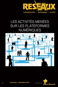 Activities run on digital platforms No 212, 2018/6 - pagesPages 9 to 22Digital platformsBy Jean-Samuel Beuscart, Patrice FlichyPages 23 to 49The ins and outs of instant delivery platformsBy Anne Aguilera, Laetitia Dablanc, Alain RalletPages 51 to 84For a few euros moreBy Pauline Barraud de Lagerie, Luc Sigalo Santos, translated by Jean-Yves BartPages 85 to 119Are digital platforms revolutionizing the way we work?By Bruno Chaves Ferreira, Anne Jourdain, Sidonie NaulinPages 121 to 148Reinforcing and transgressing the digital intermediation frameworkBy Adrien Bailly, Florent Boudot-AntoinePages 149 to 178Community management activity put to the test of the social Web’s algorithmic architectureBy Thomas JammetPages 179 to 206Producing newsworthy imagesBy Valentina GrossiPages 207 to 232Finding a way out of the ontological debateBy Céline BorellePages 233 to 241Reviews
